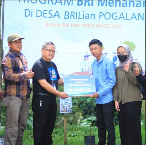 Penyerahan dilakukan langsung oleh BRI Unit Pakis kepada Bapak Lurah Madiyono dan Perwakilan Bumdesa Sejahtera Pogalan Mas Jaka. Selain itu dalam penyerahan ini dihadiri juga oleh seluruh perangkat Desa Pogalan, Mba Nurul ( anggota Bumdesa Sejahtera Pogalan), Fitri (PKKP Kab. Magelang), Pendamping Desa, dan Masyarakat sekitar kawasan wisata.