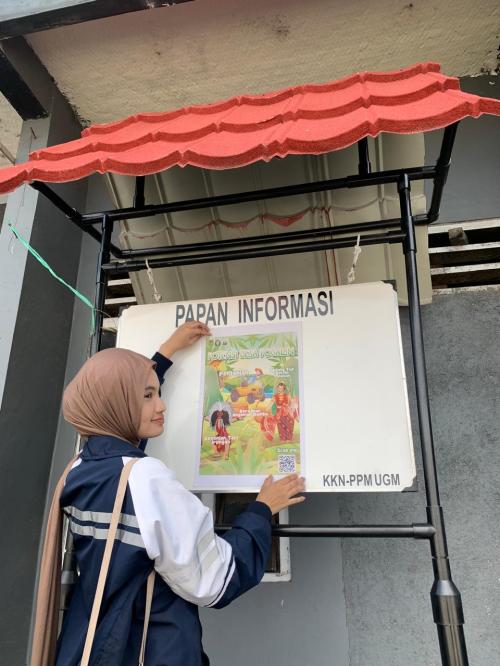 Pemasangan poster potensi Desa Pogalan di Papan Informasi Wisata Top Selfie Kragilan (Dok. Pribadi)