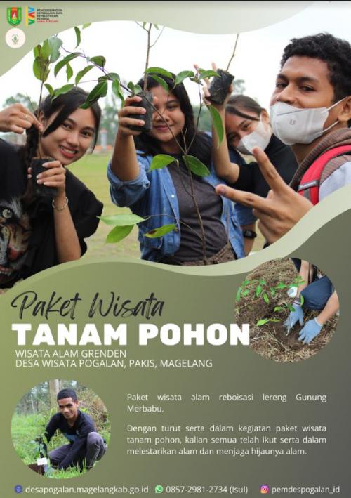 Paket Wisata Tanam Pohon Desa Pogalan merupakan sebuah paket dengan konsep alam lestari. Dengan adanya wisata yang mengikuti paket tanam pohon akan memberikan kesejahteraan terhadap alam dan satwa liar.